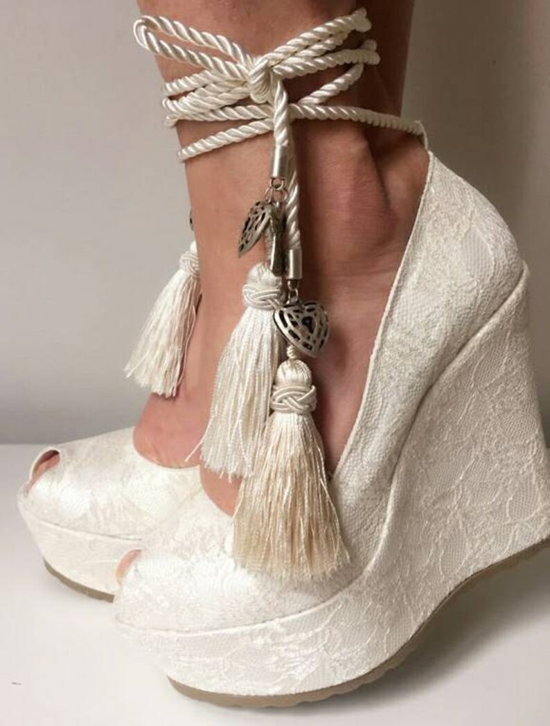 İvory Lace Wedding Wedges Wedges with TasselsIvory Wedges