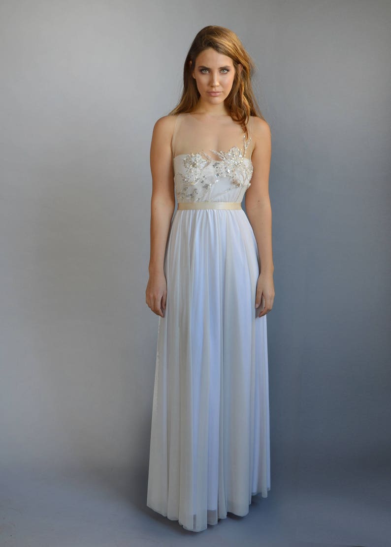 Boho see through wedding dress Ivory maxi sleeveless