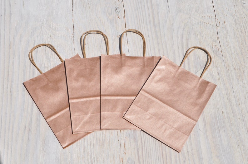 100 Pack Rose Gold Gift Bags with Handles Wedding